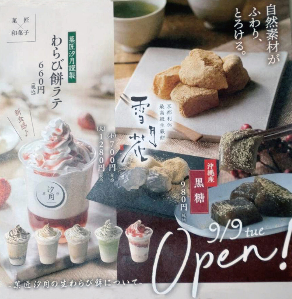 オープンを記念しまして、ファミリーニュースの紙面をご覧になった方限定で「わらび餅」「わらび餅ラテ」を50円引きいたします!合言葉は、紙面をご確認ください。