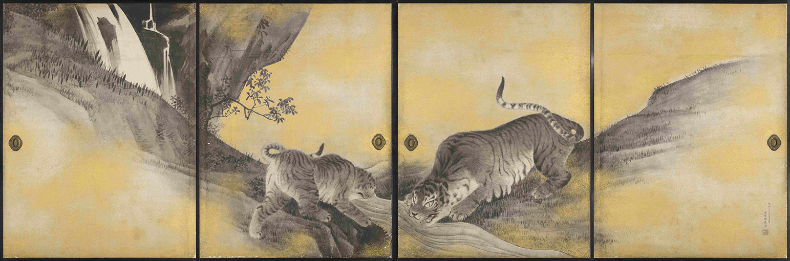 江戸時代中期から後期にかけて活躍した絵師・円山応挙(1733~95)。本展覧会では、国宝「雪松図屛風(びょうぶ) 」や重要文化財「藤花図屛風」をはじめとする数々の応挙の傑作を展示し、応挙が「革新者」から「巨匠」になっていく軌跡をたどります。香川県の金刀比羅宮(ことひらぐう)から特別出品される重要文化財「遊虎図襖(ゆうこずふすま)(16面の内)」は、京都にあった三井家が援助をして応挙が描いた作品として知られています。