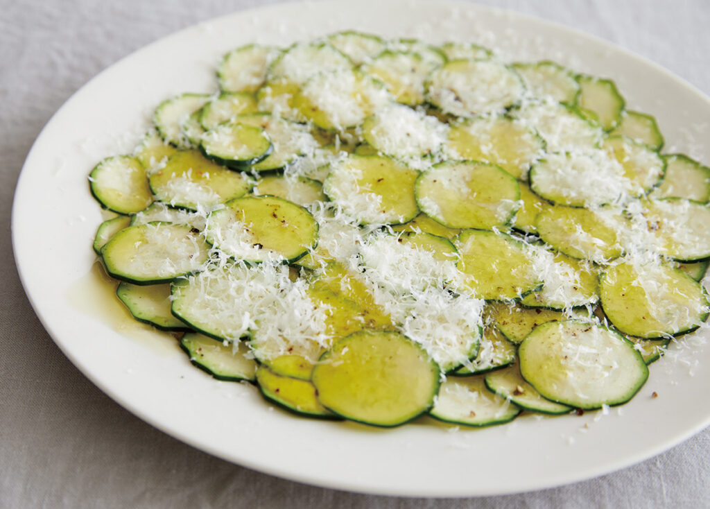 ズッキーニのカルパッチョ 料理・市瀬悦子/撮影・木村拓1人分162kcal 塩分0.8g 5分 【材料(2人分)】ズッキーニ ・・・・・・・・・・1/2本粉チーズ(パルミジャーノ) ・・30gオリーブ油 ・・・・・・・・・・大さじ1と1/2塩 ・・・・・・・・・・・・・・少々粗びき黒コショウ ・・・・・・・少々 ———————————— 【作り方】①ズッキーニは薄い輪切りにして器に盛る。塩とコショウを振り、粉チーズを振る。オリーブ油をかける。
